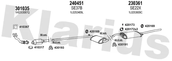 SEAT TOLEDO I (1L2) 1.6 i - Výfukový systém - kompletní od 5/1991 do 12/1993, 1595 ccm, 52 kW, 71 hp, 1F, Šikmá zadní část