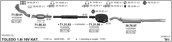 SEAT TOLEDO I (1L2) 1.8 16V - Výfukový systém - kompletní od 5/1991 do 3/1999, 1781 ccm, 92 kW, 125 hp, PL, Šikmá zadní část