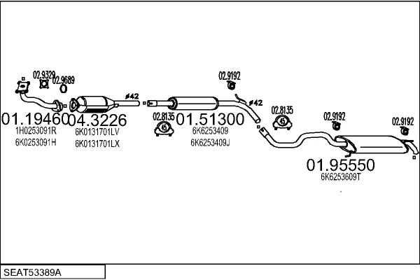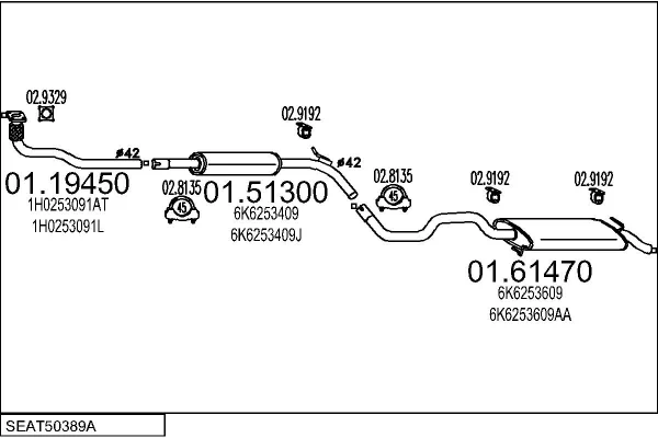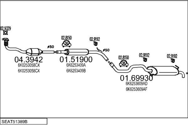 SEAT IBIZA II (6K1) 1.9 SDI - Výfukový systém - kompletní od 8/1996 do 8/1999, 1896 ccm, 47 kW, 64 hp, AEY, Šikmá zadní část