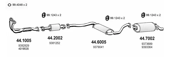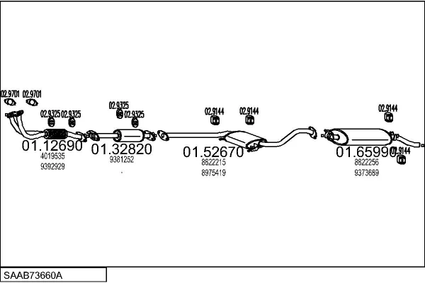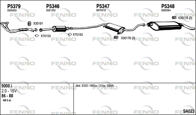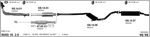SAAB 9000 Šikmá zadní část 2.0 -16 - Výfukový systém - kompletní od 12/1985 do 8/1988, 1985 ccm, 94 kW, 128 hp, B202XI, Šikmá zadní část