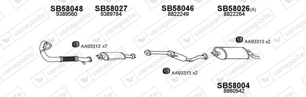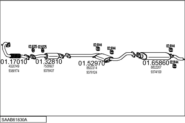 SAAB 9000 Šikmá zadní část 2.0 -16 Turbo - Výfukový systém - kompletní od 9/1984 do 12/1991, 1985 ccm, 129 kW, 175 hp, B202L, B202XL, Šikmá zadní část