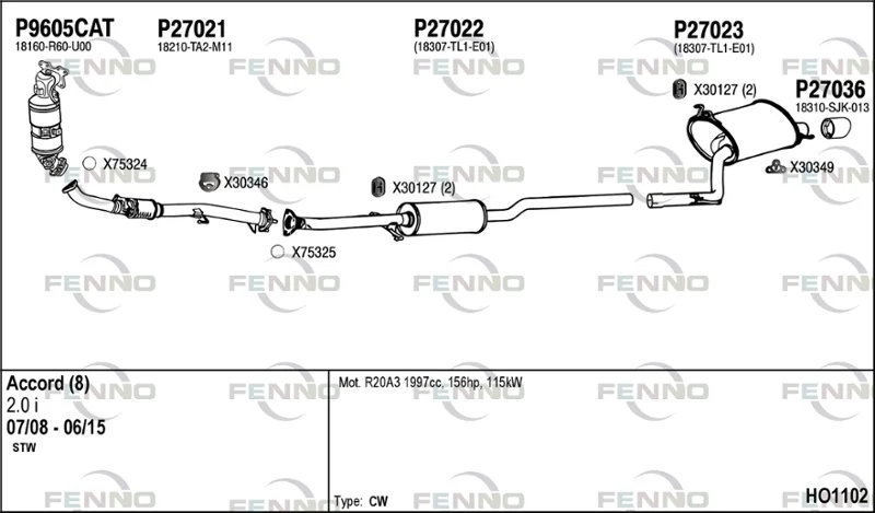 HONDA ACCORD VIII kombi (CW) 2.0 i (CW1) - Výfukový systém - kompletní od 7/2008 do 6/2015, 1997 ccm, 115 kW, 156 hp, R20A3, kombi