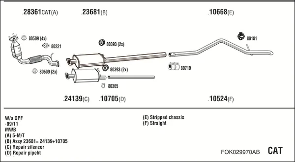 FORD TRANSIT autobus (FD_ _, FB_ _, FS_ _, FZ_ _, FC_ _) 2.2 TDCi - Výfukový systém - kompletní od 10/2007 do 8/2014, 2198 ccm, 103 kW, 140 hp, PGFA, PGFB, UHFA, UHFB, UHFC, autobus