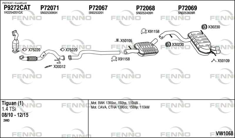 VW TIGUAN (5N_) 1.4 TSI - Výfukový systém - kompletní od 5/2008 do 7/2018, 1390 ccm, 110 kW, 150 hp, BWK, CAVA, CTHA, SUV