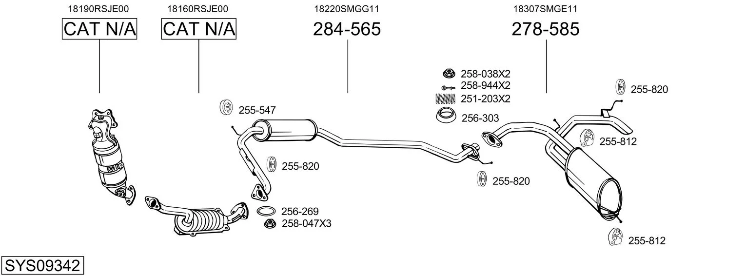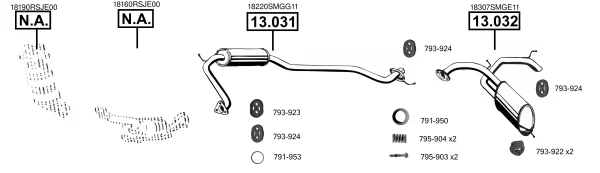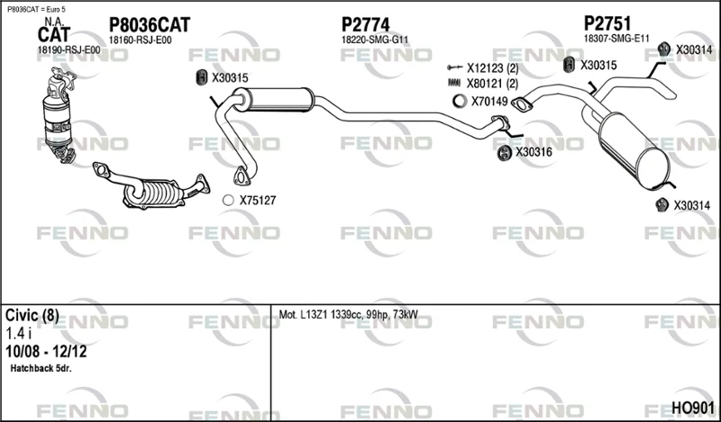 HONDA CIVIC VIII Hatchback (FN, FK) 1.4 (FK1, FN4) - Výfukový systém - kompletní od 10/2008 do 12/2011, 1339 ccm, 73 kW, 100 hp, L13Z1, Šikmá zadní část