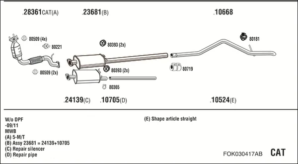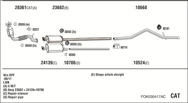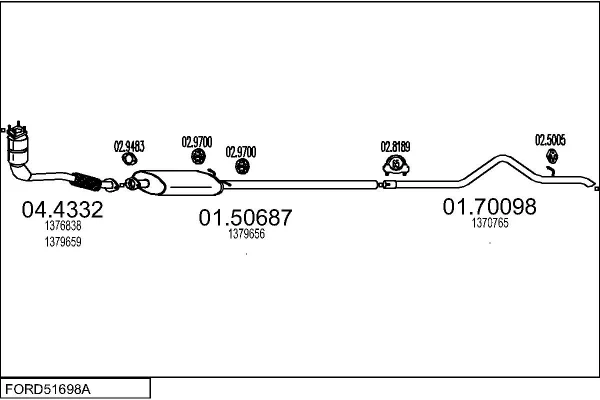 FORD TRANSIT TOURNEO autobus 2.2 TDCi - Výfukový systém - kompletní od 10/2008 do 8/2014, 2198 ccm, 85 kW, 115 hp, SRFA, SRFB, SRFC, SRFD, SRFE, autobus