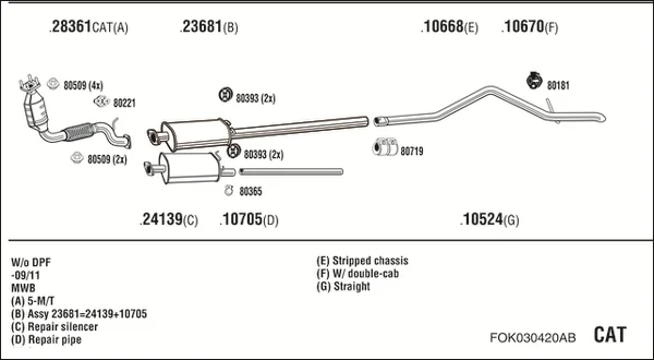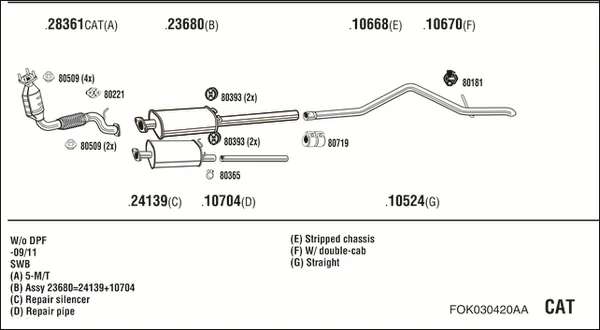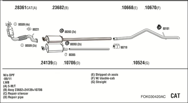 FORD TRANSIT valník/podvozek (FM_ _, FN_ _, FF_ _) 2.2 TDCi - Výfukový systém - kompletní od 10/2008 do 8/2014, 2198 ccm, 85 kW, 115 hp, SRFA, SRFB, SRFC, SRFD, SRFE, valník/podvozek
