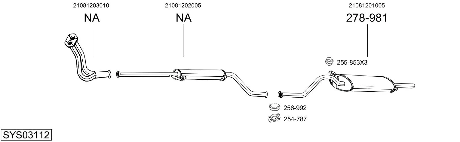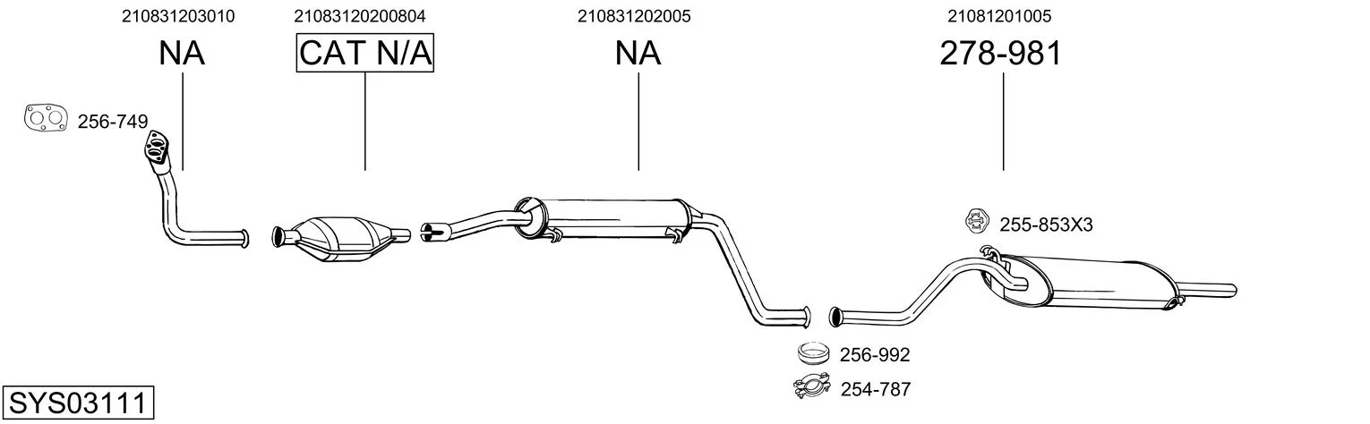 LADA SAMARA (2108, 2109, 2113, 2114) 1500 - Výfukový systém - kompletní od 9/1987 do 12/1996, 1499 ccm, 53 kW, 72 hp, 21083, Šikmá zadní část