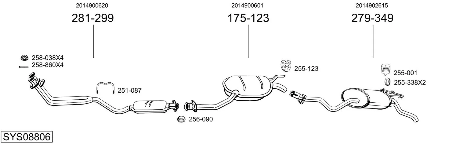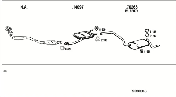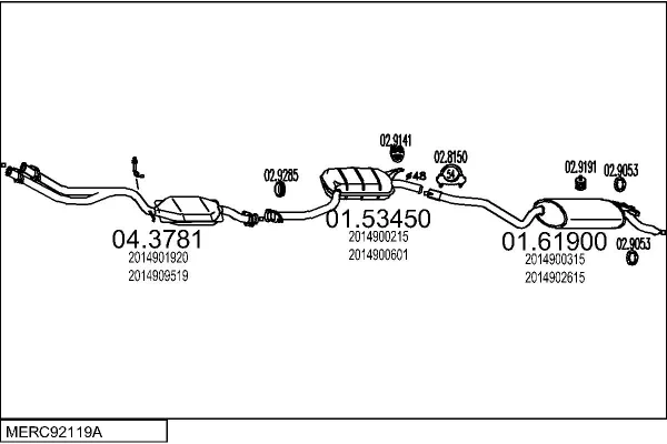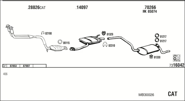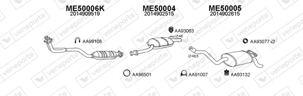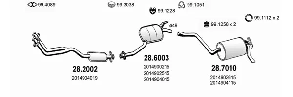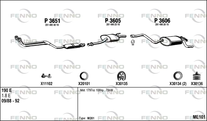 MERCEDES-BENZ 190 (W201) E 1.8 (201.018) - Výfukový systém - kompletní od 4/1990 do 8/1993, 1797 ccm, 80 kW, 109 hp, M 102.910, limuzína