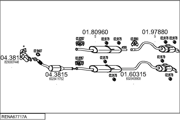 RENAULT ESPACE III (JE0_) 2.2 dCi (JE0S) - Výfukový systém - kompletní od 7/2000 do 10/2002, 2188 ccm, 85 kW, 115 hp, G9T 710, velkoprostorová limuzína
