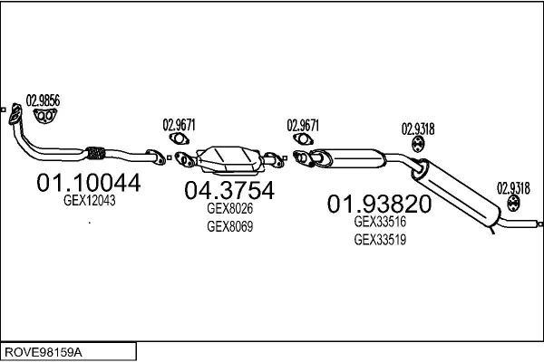 ROVER MINI Šikmá zadní část 1300 - Výfukový systém - kompletní od 1/1992 do 11/2000, 1275 ccm, 46 kW, 63 hp, 12 A2E, 12 A2L, Šikmá zadní část