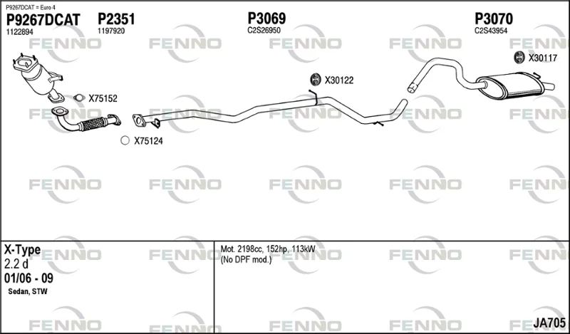 JAGUAR X-TYPE I kombi (X400) 2.2 D - Výfukový systém - kompletní
