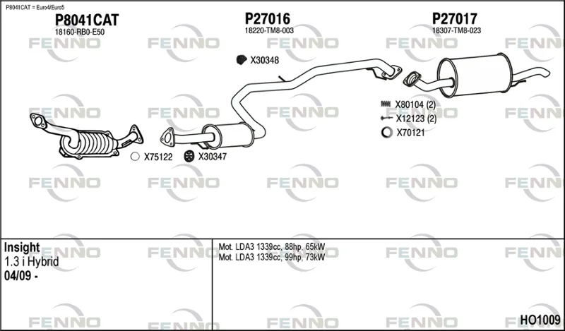 HONDA INSIGHT (ZE_) 1.3 IMA (ZE28, ZE2) - Výfukový systém - kompletní od 4/2009, 1339 ccm, 65 kW, 88 hp, LDA3, Šikmá zadní část