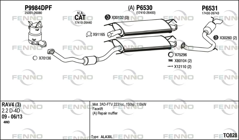 TOYOTA RAV 4 III (_A3_) 2.2 D 4WD (ALA30_, ALA30R) - Výfukový systém - kompletní od 12/2008 do 6/2013, 2231 ccm, 110 kW, 150 hp, 2AD-FHV, 2AD-FTV, SUV