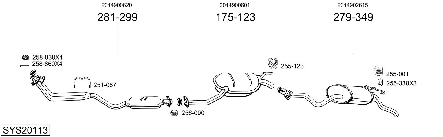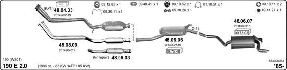 MERCEDES-BENZ 190 (W201) E 2.0 (201.024) - Výfukový systém - kompletní od 2/1985 do 12/1986, 1996 ccm, 85 kW, 116 hp, M 102.962, limuzína