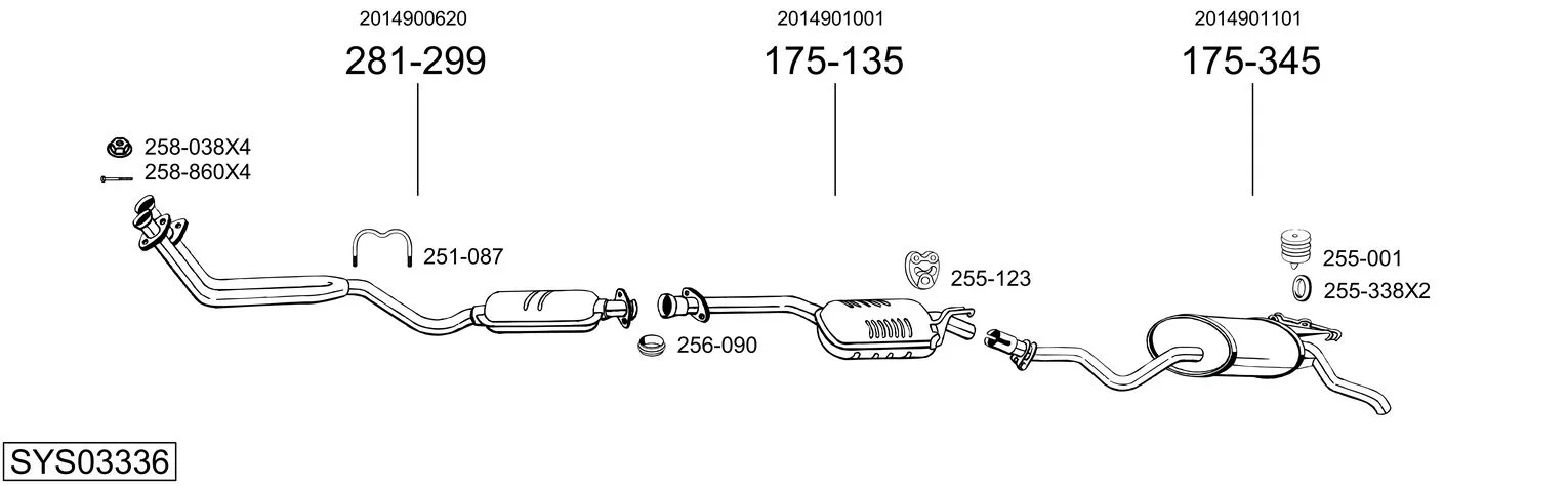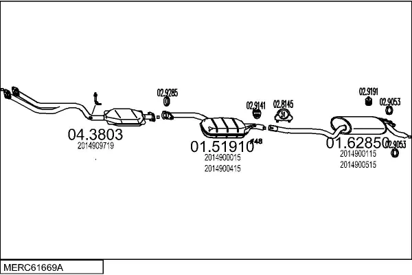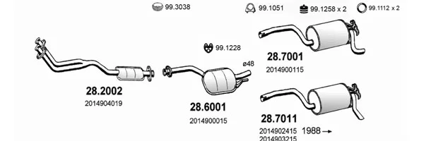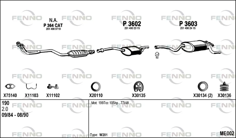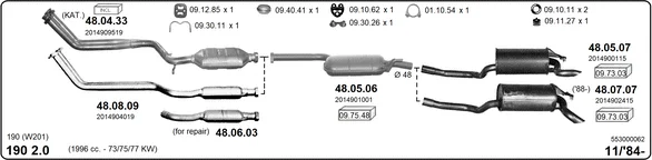 MERCEDES-BENZ 190 (W201) 2.0 (201.023) - Výfukový systém - kompletní od 1/1986 do 5/1990, 1996 ccm, 75 kW, 102 hp, M 102.924, limuzína