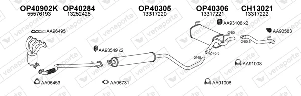 CHEVROLET CRUZE (J300) 1.6 - Výfukový systém - kompletní od 5/2009, 1598 ccm, 83 kW, 113 hp, F16D4, LDE, limuzína