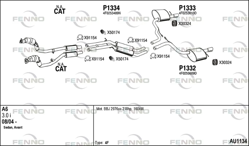 AUDI A6 C6 Avant (4F5) 3.0 - Výfukový systém - kompletní