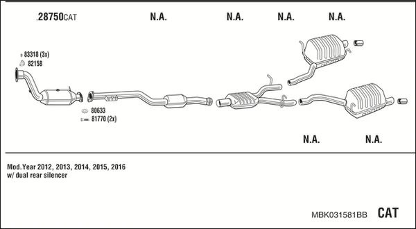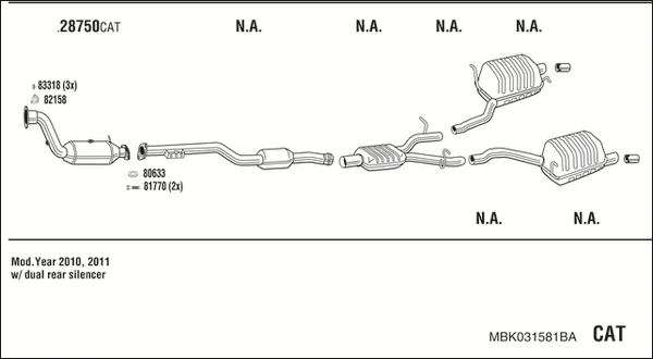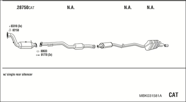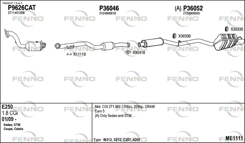 MERCEDES-BENZ E-CLASS T-Model (S212) E 250 CGI (212.247) - Výfukový systém - kompletní od 11/2009 do 12/2013, 1796 ccm, 150 kW, 204 hp, M 271.860, kombi