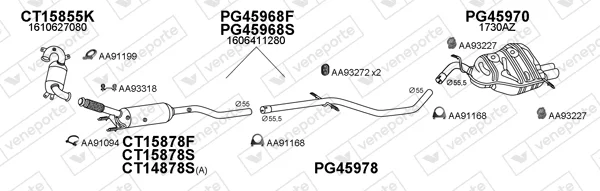 PEUGEOT 407 kupé (6C_) 2.0 HDi - Výfukový systém - kompletní od 6/2009, 1997 ccm, 120 kW, 163 hp, RHH (DW10CTED4), kupé