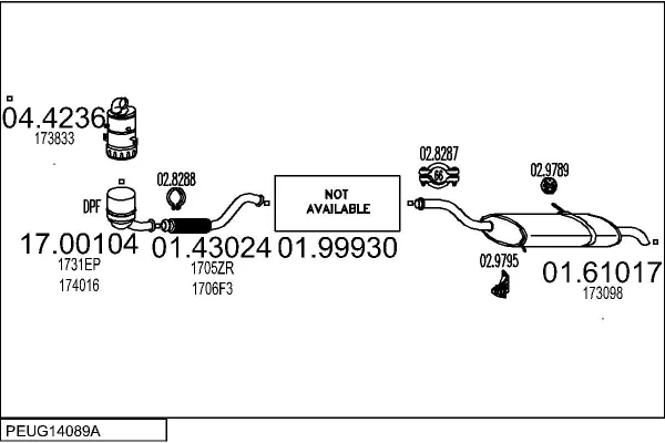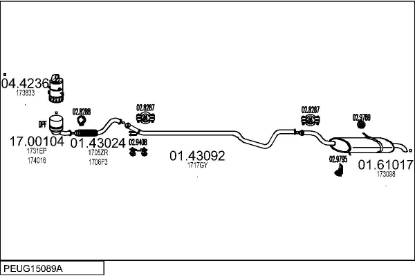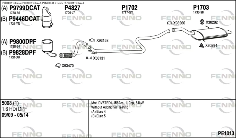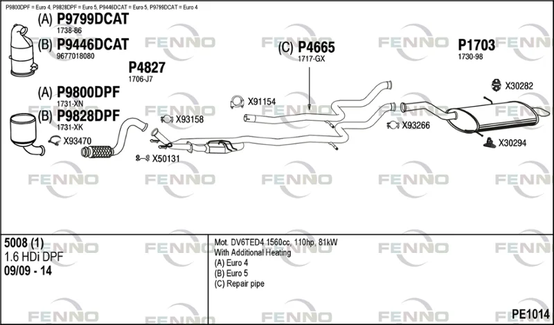 PEUGEOT 5008 (0U_, 0E_) 1.6 HDi - Výfukový systém - kompletní od 9/2009 do 3/2017, 1560 ccm, 80 kW, 110 hp, 9HZ (DV6TED4), velkoprostorová limuzína