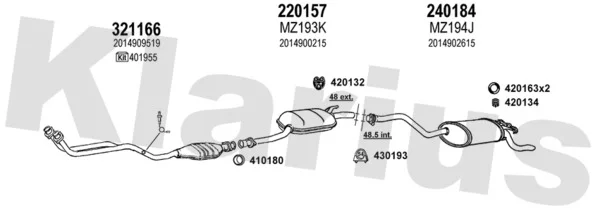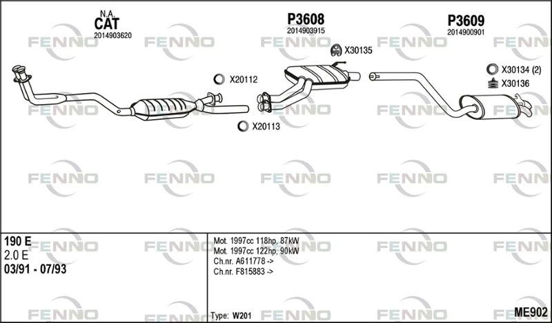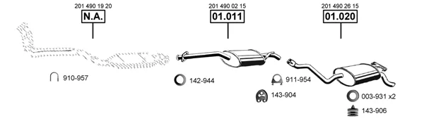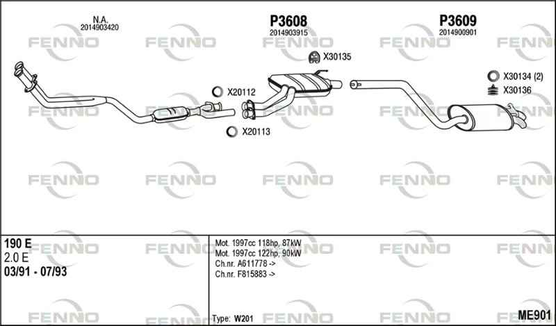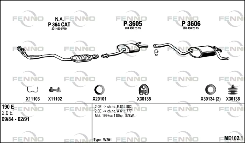 MERCEDES-BENZ 190 (W201) E 2.0 - Výfukový systém - kompletní od 1/1985 do 8/1993, 1996 ccm, 87 kW, 118 hp, M 102.962, limuzína