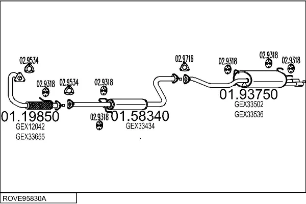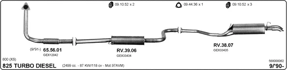 ROVER 800 (XS) 825 D/SD (XS) - Výfukový systém - kompletní od 1/1990 do 2/1999, 2500 ccm, 87 kW, 118 hp, 425 SL1RR, 492 4 SHIRG, limuzína