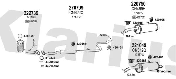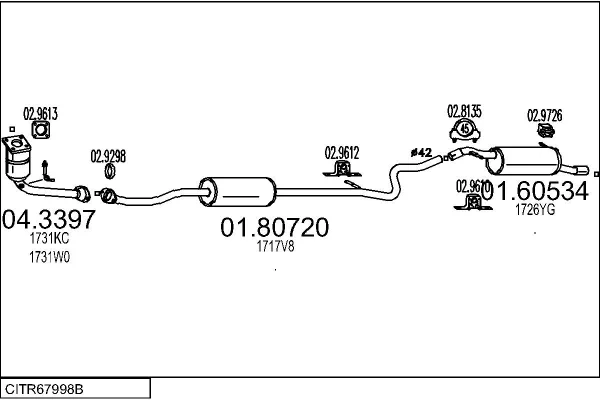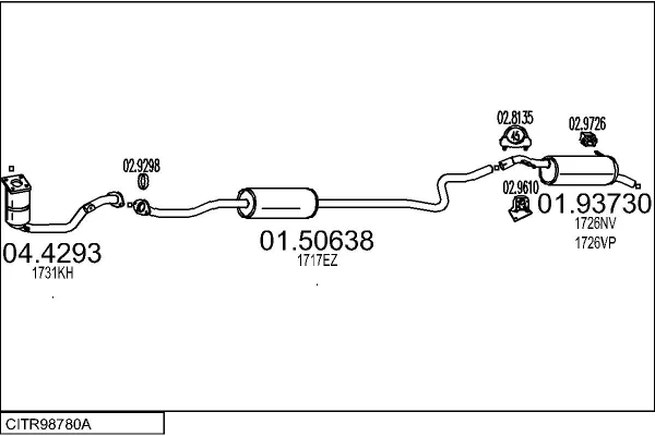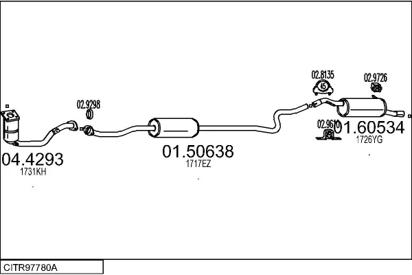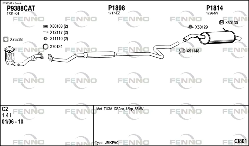 CITROËN C2 (JM_) 1.4 - Výfukový systém - kompletní od 10/2006 do 12/2009, 1360 ccm, 55 kW, 75 hp, KFV (TU3JP), Šikmá zadní část