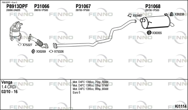 KIA VENGA (YN) 1.4 CRDi 90 - Výfukový systém - kompletní od 2/2010 do 3/2019, 1396 ccm, 66 kW, 90 hp, D4FC, Šikmá zadní část