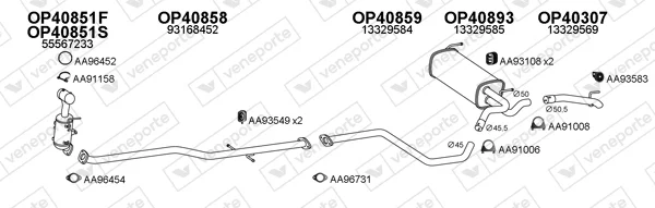 OPEL ASTRA J (P10) 1.3 CDTI (68) - Výfukový systém - kompletní od 12/2009 do 10/2015, 1248 ccm, 70 kW, 95 hp, A 13 DTE, Šikmá zadní část