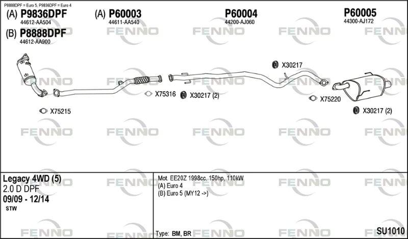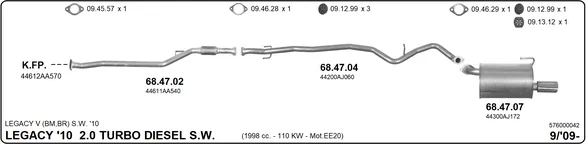 SUBARU LEGACY V kombi (BR) 2.0 D AWD (BRD) - Výfukový systém - kompletní