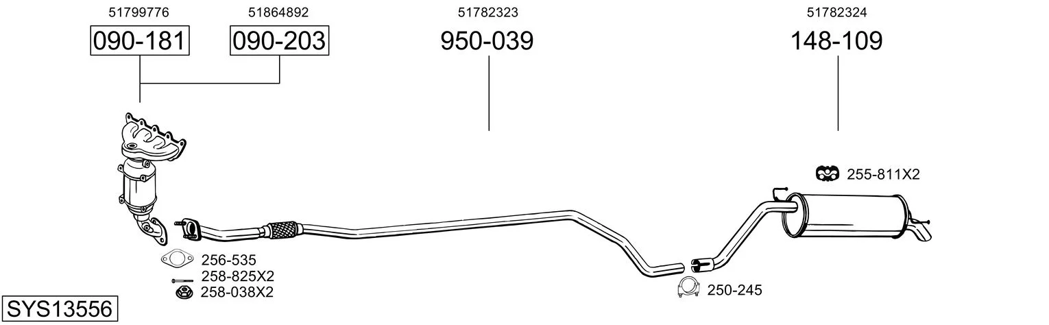 FIAT PUNTO EVO (199_) 1.2 - Výfukový systém - kompletní od 10/2009 do 2/2012, 1242 ccm, 48 kW, 65 hp, 199 A4.000, Šikmá zadní část