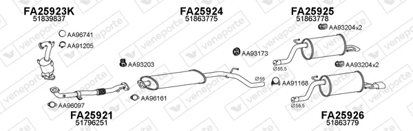 FIAT PUNTO EVO (199_) 1.4 16V (199AXW1A) - Výfukový systém - kompletní od 10/2009 do 2/2012, 1368 ccm, 99 kW, 135 hp, 955 A2.000, Šikmá zadní část