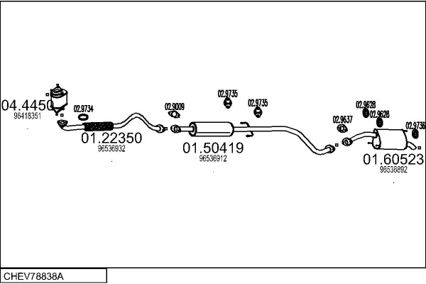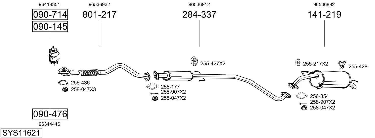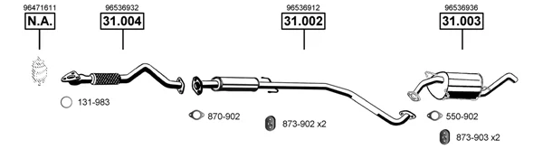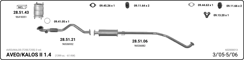 CHEVROLET AVEO / KALOS limuzína (T250, T255) 1.4 - Výfukový systém - kompletní od 3/2005, 1399 ccm, 61 kW, 83 hp, LX5(85CUL4), limuzína