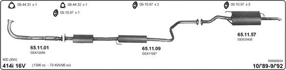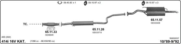 ROVER 400 II (XW) 414 GSI/SI - Výfukový systém - kompletní od 4/1990 do 4/1995, 1396 ccm, 66 kW, 90 hp, 14 K4C, 14 K4D, limuzína