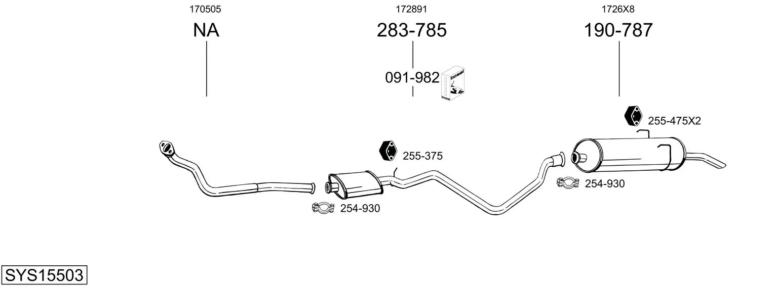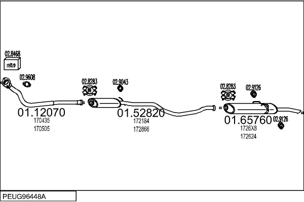 PEUGEOT 405 II (4B) 1.6 - Výfukový systém - kompletní od 8/1992 do 8/1994, 1580 ccm, 68 kW, 92 hp, B2A (XU52C/K), BFZ (XU5JP), limuzína