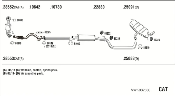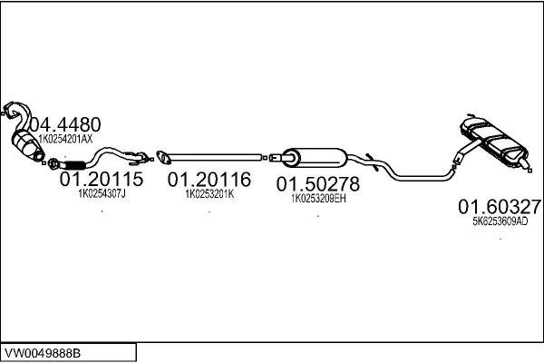 VW GOLF PLUS V (5M1, 521) 1.2 TSI - Výfukový systém - kompletní od 11/2009 do 12/2013, 1197 ccm, 77 kW, 105 hp, CBZB, Šikmá zadní část