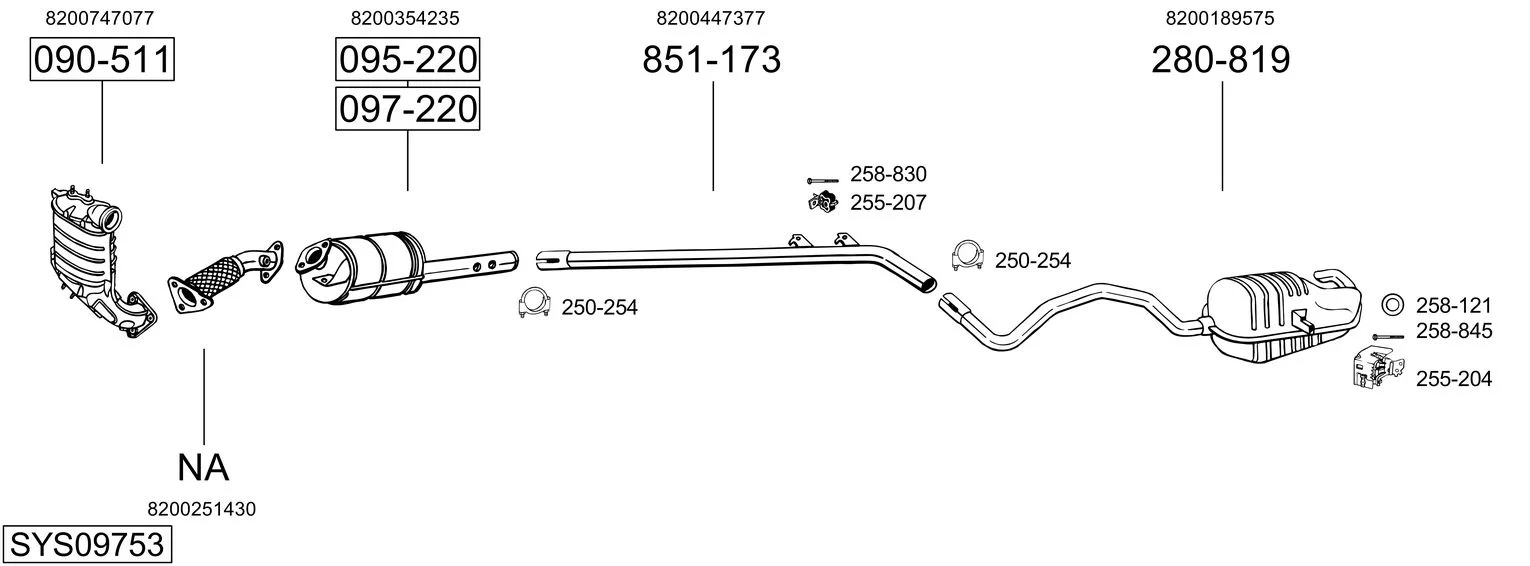 RENAULT SCÉNIC II (JM0/1_) 1.9 dCi - Výfukový systém - kompletní od 6/2003 do 11/2008, 1870 ccm, 92 kW, 125 hp, F9Q 804, velkoprostorová limuzína