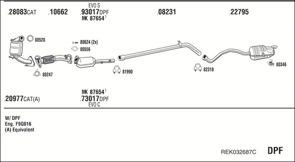 RENAULT MEGANE II Coupé-Cabriolet (EM0/1_) 1.9 dCi - Výfukový systém - kompletní od 9/2003 do 3/2009, 1870 ccm, 85 kW, 115 hp, F9Q 800, F9Q 803, F9Q 804, F9Q 816, F9Q 818, Kabriolet