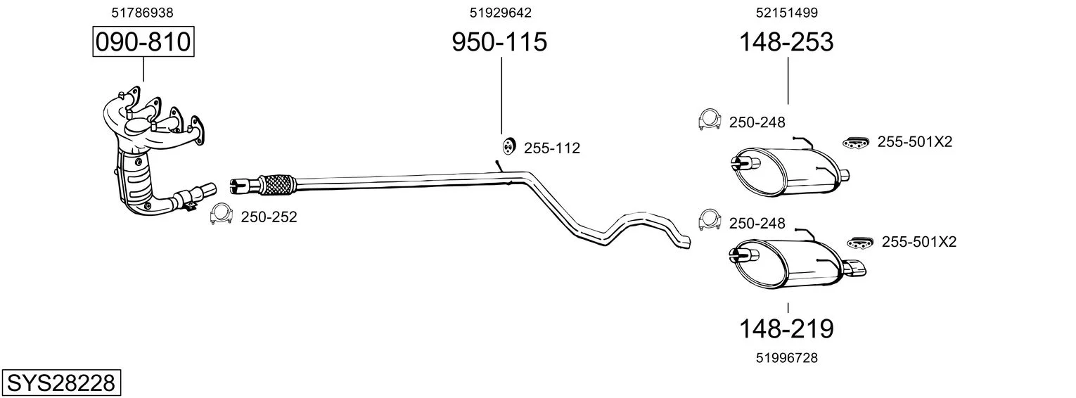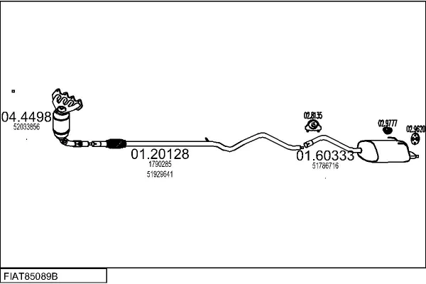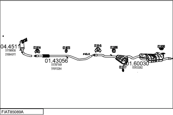 FIAT 500 C (312_) 1.2 (312CXA1A, 312AXA1A) - Výfukový systém - kompletní od 9/2009, 1242 ccm, 51 kW, 69 hp, 169 A4.000, Kabriolet