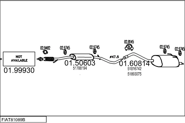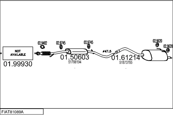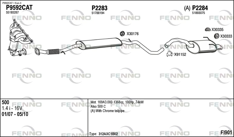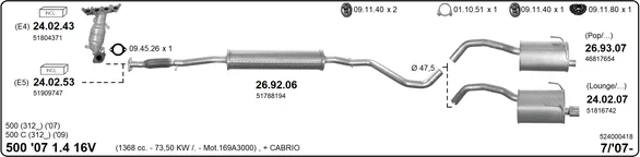 FIAT 500 C (312_) 1.4 (312CXC1B, 312AXC1B) - Výfukový systém - kompletní od 9/2009, 1368 ccm, 74 kW, 100 hp, 169 A3.000, Kabriolet