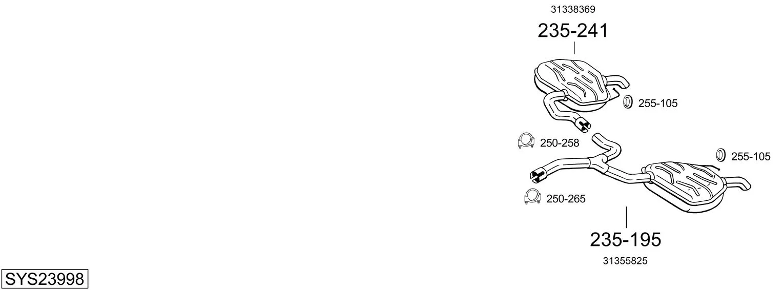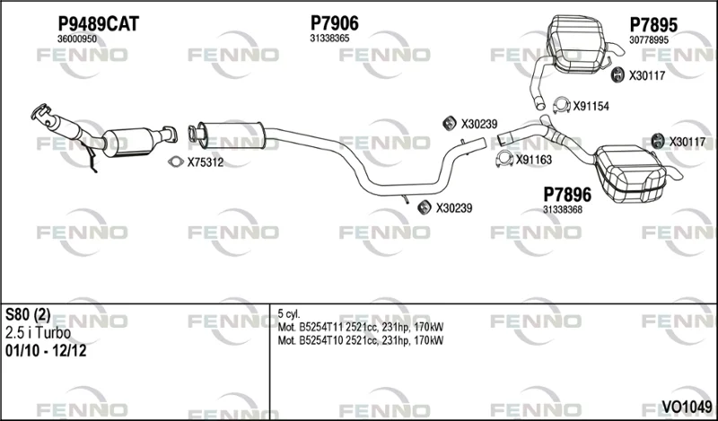VOLVO S80 II (124) 2.5 T FlexFuel - Výfukový systém - kompletní od 1/2010 do 12/2011, 2521 ccm, 170 kW, 231 hp, B 5254 T11, limuzína