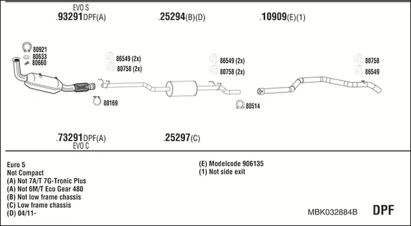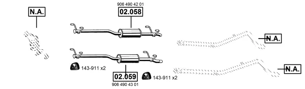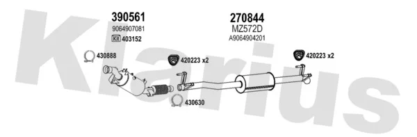 MERCEDES-BENZ SPRINTER 5-t valník/podvozek (B906) 519 CDI / BlueTEC (906.153, 906.155, 906.253, 906.255) - Výfukový systém - kompletní od 3/2009 do 12/2018, 2987 ccm, 140 kW, 190 hp, OM 642.896, OM 642.898, OM 642.986, OM 642.992, valník/podvozek