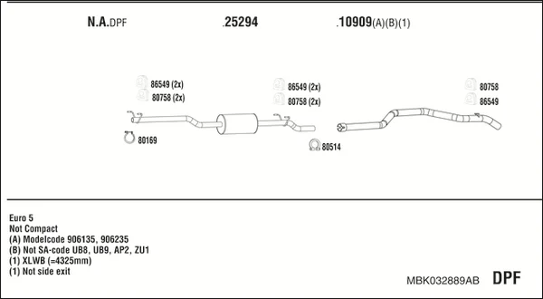 MERCEDES-BENZ SPRINTER 5-t valník/podvozek (B906) 510 CDI (906.153, 906.155, 906.253, 906.255) - Výfukový systém - kompletní od 3/2009 do 12/2016, 2143 ccm, 70 kW, 95 hp, OM 651.955, OM 651.956, valník/podvozek