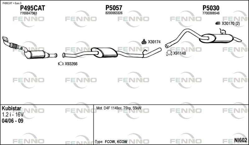 NISSAN KUBISTAR Krabice (X76) 1.2 16V - Výfukový systém - kompletní od 4/2006, 1149 ccm, 55 kW, 75 hp, D4F 712, Krabice