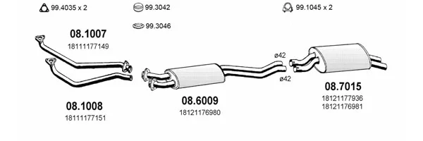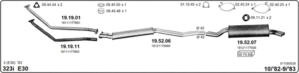 BMW 3 (E30) 323 i - Výfukový systém - kompletní od 9/1982 do 8/1983, 2316 ccm, 102 kW, 139 hp, M20 B23 (236EB), limuzína