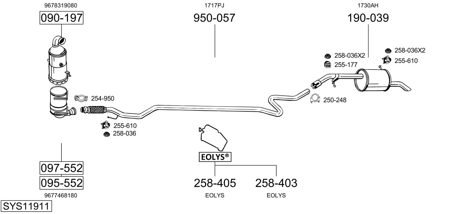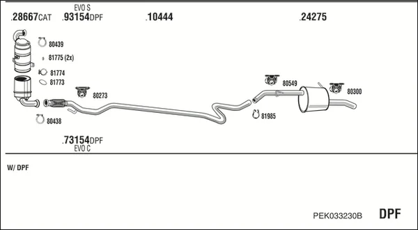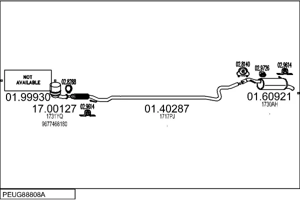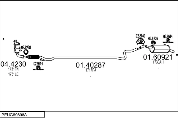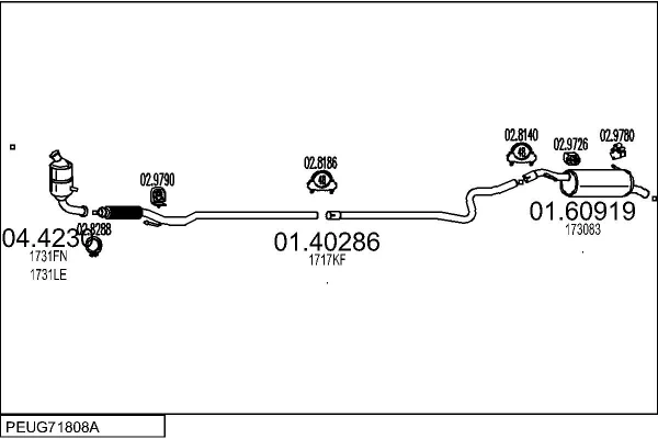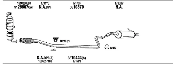 PEUGEOT 207 Schránky/šikmá záď (WA_, WC_) 1.4 HDi - Výfukový systém - kompletní od 4/2007, 1398 ccm, 50 kW, 68 hp, 8HR (DV4C), 8HZ (DV4TD), Schránky/šikmá záď