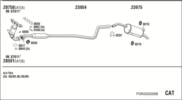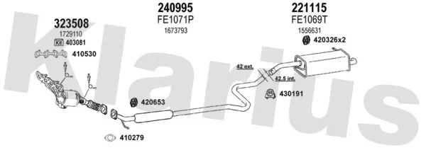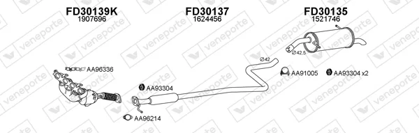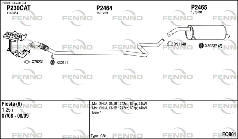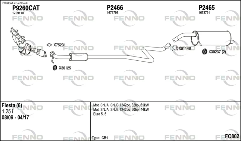 FORD FIESTA VI Van 1.25 - Výfukový systém - kompletní od 1/2009 do 4/2017, 1242 ccm, 60 kW, 82 hp, SNJA, SNJB, SNJC, SNJD, Schránky/šikmá záď