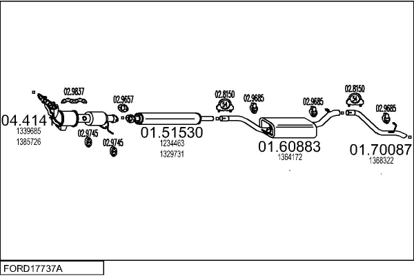FORD FOCUS II (DA_, HCP, DP) 1.6 LPG - Výfukový systém - kompletní od 10/2009 do 7/2011, 1596 ccm, 85 kW, 115 hp, SIDA, Šikmá zadní část