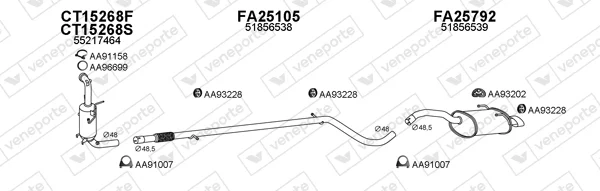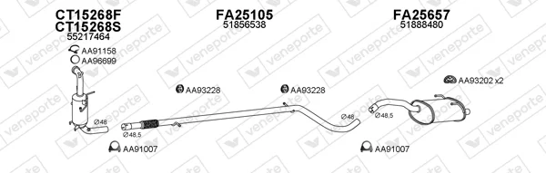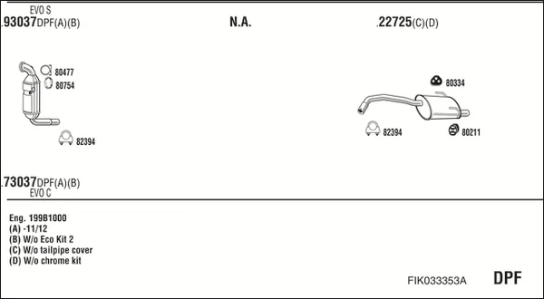 FIAT 500 (312_) 1.3 D Multijet (312AXE1A) - Výfukový systém - kompletní od 12/2009, 1248 ccm, 70 kW, 95 hp, 199 B1.000, 312 B1.000, Šikmá zadní část